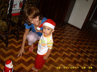 Olha eu agasalhado. Brincando com o Papai Noel. Ajudando a vovó. Passeando na praça. À vontade na sala do vovô. ...muito à vontade. Tira logo a foto papai, enquanto o v0vô não está olhando. (mexendo no cantinho do vovô) Tomei conta da cadeiro do vô.